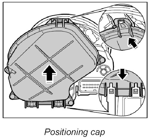1. Position cap on main headlight and press into place, making sure that the cap engages once at the top and twice at the bottom.