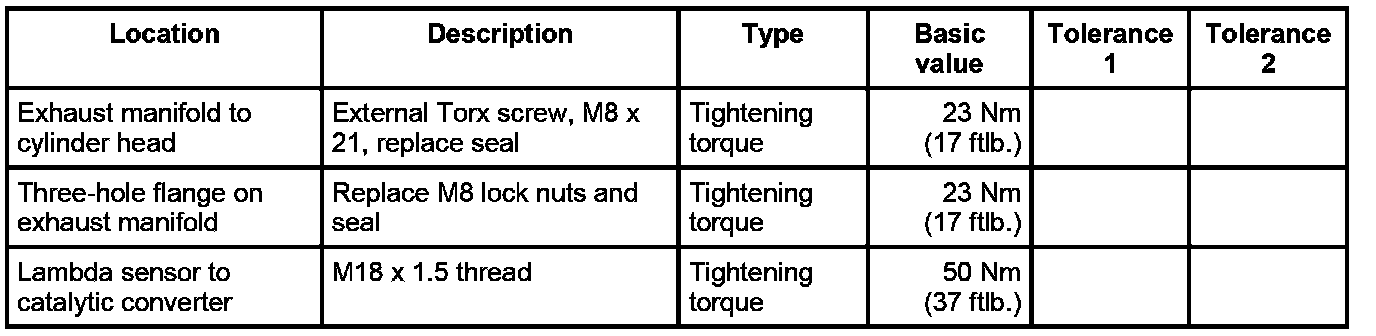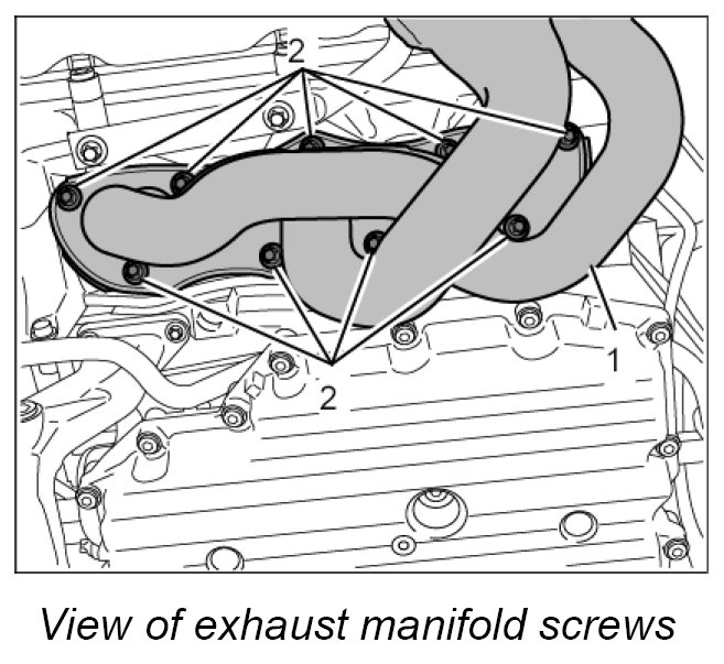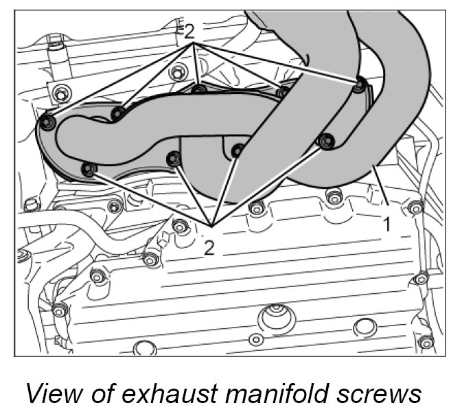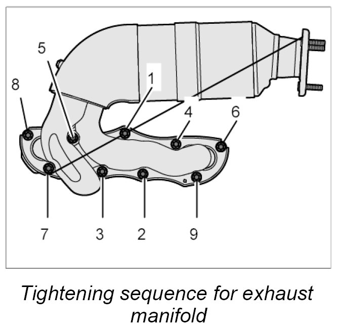 2. Fit exhaust manifold with new metal seal and nine external Torx screws on the cylinder head flange.
