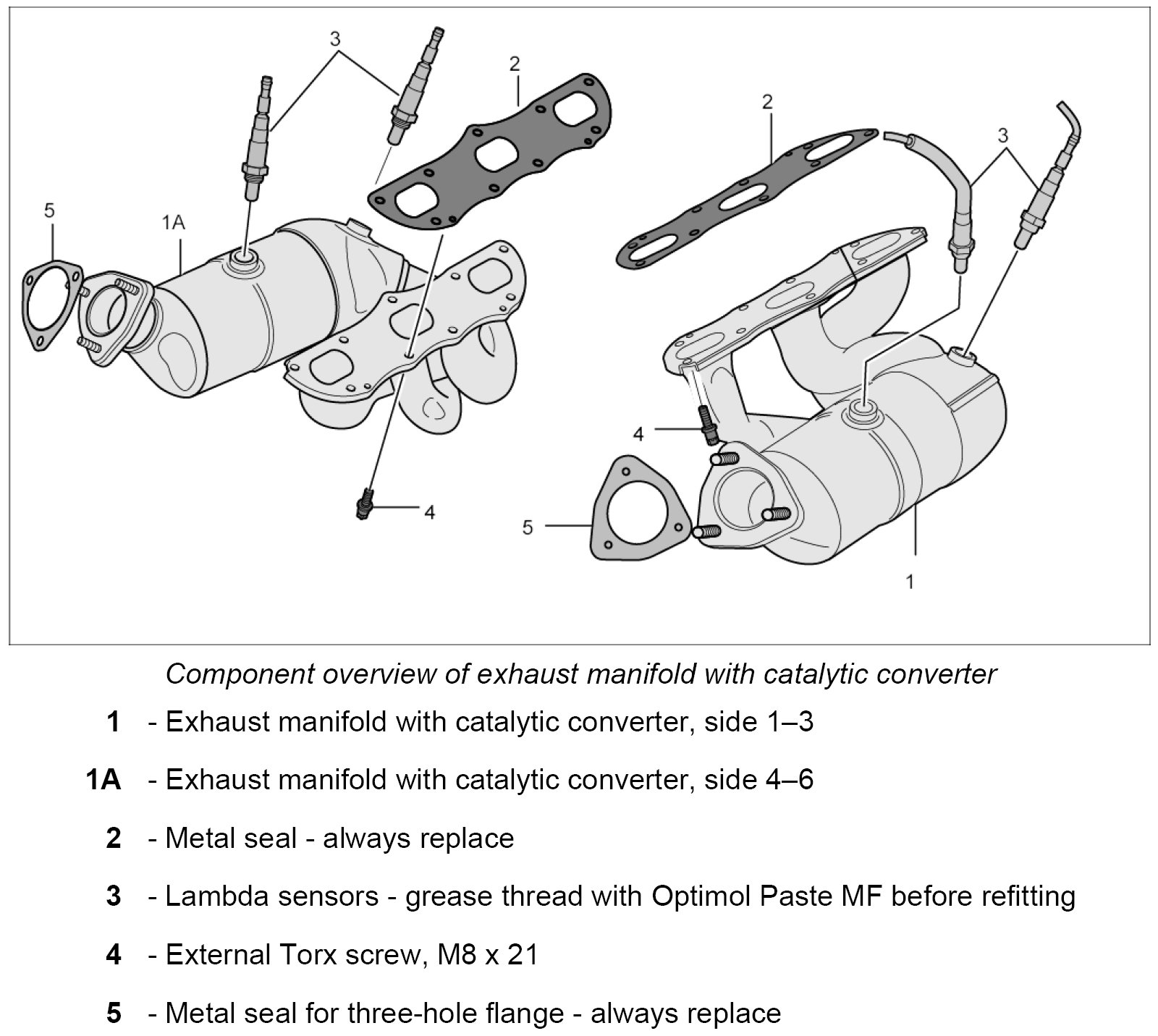 1.1. Grease thread of lambda sensors with Optimol Paste MF (Part No.: 000.043.207.07) before refitting them.