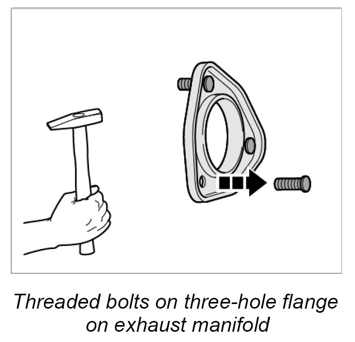 1. Tap out damaged threaded bolts on the three-hole flange with a hammer.