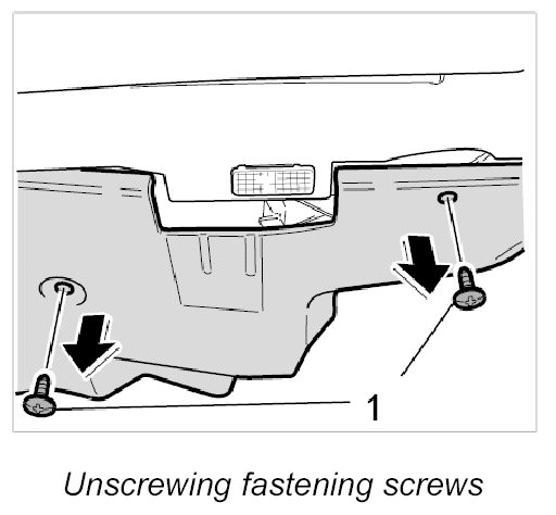 4. Unscrew both plastic screws -1- for the cover in the passenger's footwell and remove the cover downwards.