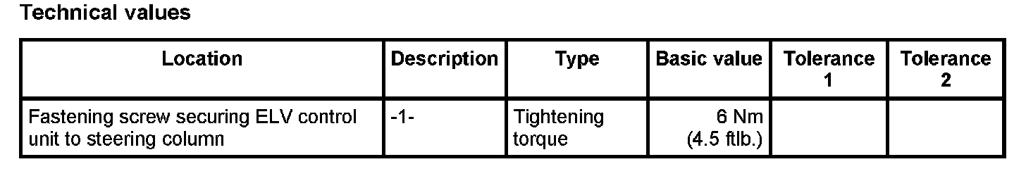 3. Unscrew the fastening screw -1- on the ELV control unit until the fastening screw -1- connects with the steering column. - Tightening torque: 6 Nm (4.5 ftlb.)