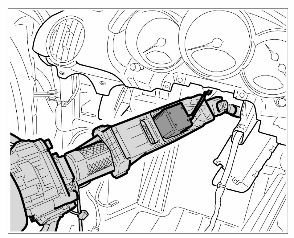 2. Slide the ELV control unit back, disengage it from the steering column and remove it by moving it upwards.