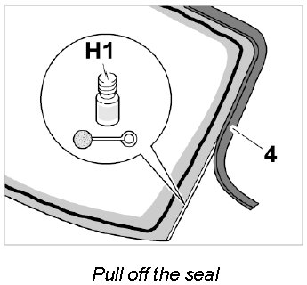 1. Pull off the seal -4-. Remove adhesive residues with cleaning solution -H1-.
