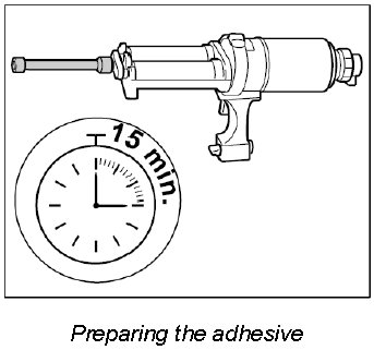 1. Prepare 2-component bonding material for processing. Refer to Processing of Porsche 2-component window bonding agents.