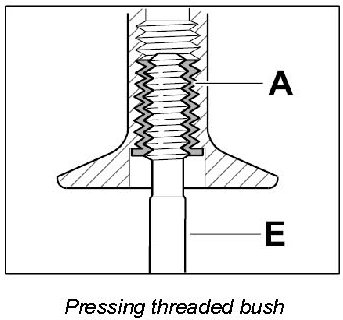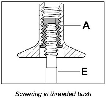 Screw threaded bush A in fully (note bush length classification) using the screw-in tool E.
