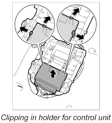 3. Press the four retaining clips carefully back and take the control unit out of the holder.
