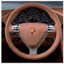 The steering wheel rim of the standard steering wheels used in the new 911 models has a high-quality smooth leather trim. The airbag module in soft-look paint rounds off the new, harmonious steering wheel design. From this generation on, a leather airbag module is part of the vehicle equipment when you opt for the optional leather interior. The newly designed 3-spoke sports steering wheel for PDK is a distinguishing feature of the new 911 models with optional Porsche Doppelkupplung transmission (PDK). The new, optional multi-function steering wheels for PDK have a unique design and are available in smooth leather, Macassar, carbon and Aluminum Look. All steering wheels for PDK have sliding buttons for changing gear manually arranged conveniently in the steering wheel spokes.