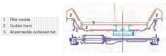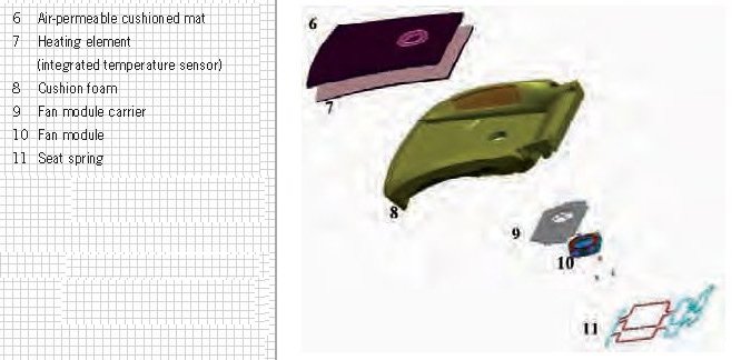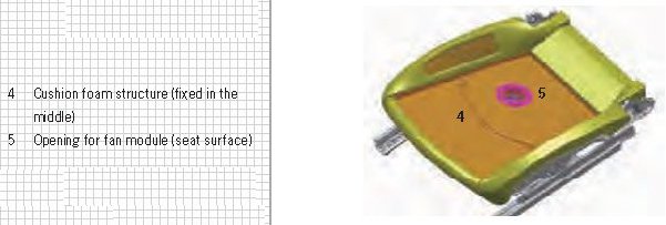 - Fan modules for the seat surface (item 1) and backrest (item 2)