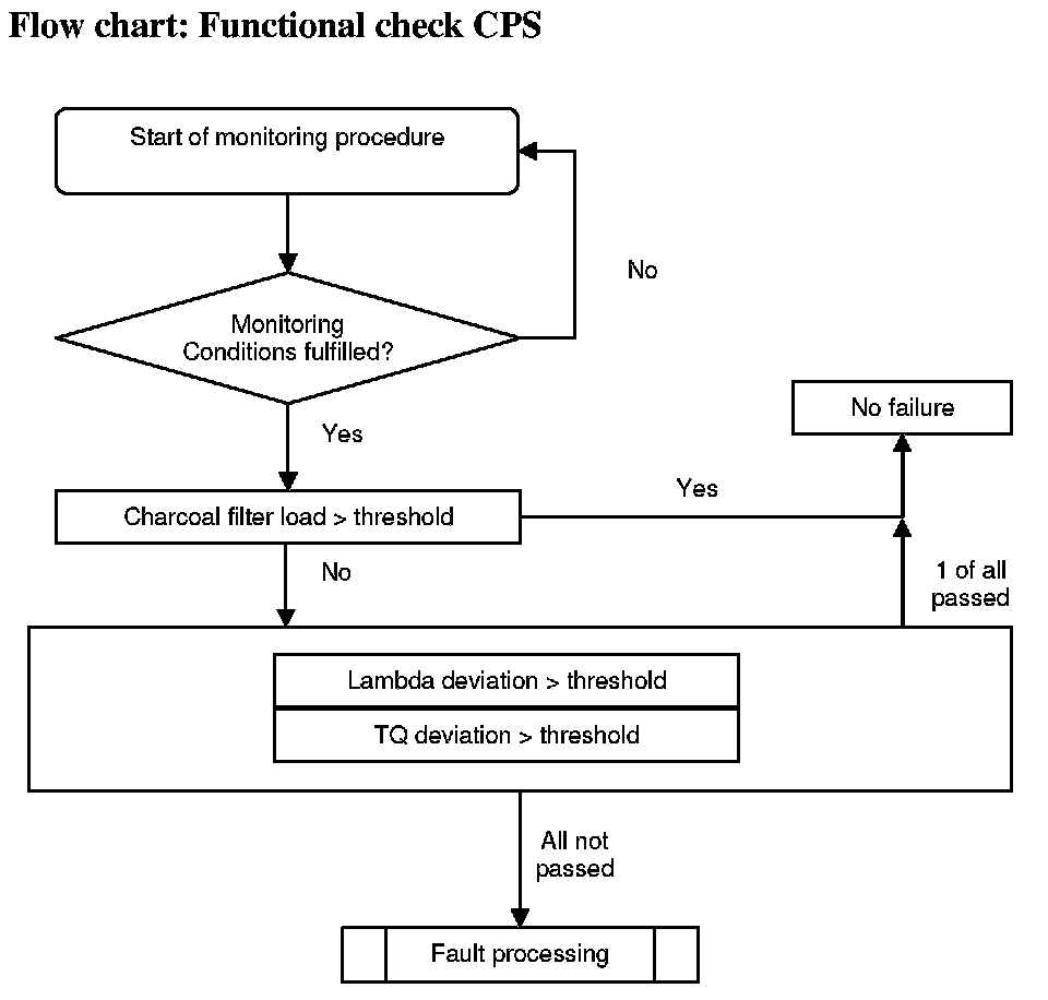 The first check of the CPS is based on the ACF- load degree. The "Canister Load diagnosis" is calculated permanently until the complete check CPS is finished. The canister load has to be over threshold for defined time to detect the system as OK.