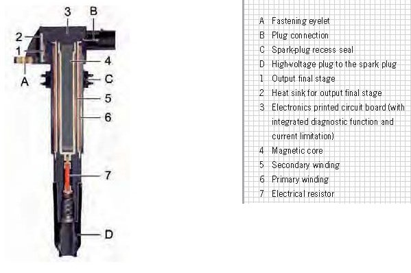 The DFI flat-six engines feature static high-voltage ignition distribution with active individual ignition coils directly on the spark plugs. The new individual ignition coils feature an integrated output driver (active ignition module) that is activated individually for each cylinder in the firing order 1-6-2-4-3-5 by the DME control unit. Furthermore, the diagnostic function is also integrated into the ignition module. If an ignition coil fails, fuel injection for the affected cylinder is deactivated.