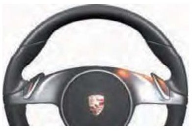 A new 3-spoke sports steering wheel for PDK is used in conjunction with the Doppel-kupplung transmission on the new 911 models. This completely redesigned steering wheel has two sliding switches, which are incorporated neatly and conveniently into the steering-wheel spokes. Pressing these switches forward changes up a gear, and pulling them or pressing them towards the driver from the back of the steering wheel changes down a gear. It makes no difference whether the left or right sliding switch is used for changing gears.