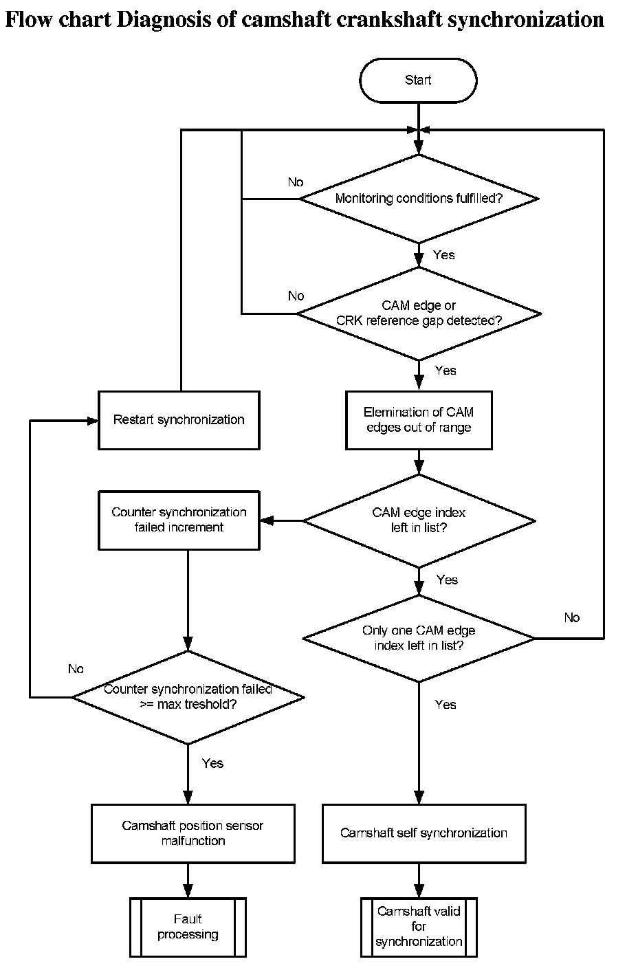 Flow chart Diagnosis of camshaft crankshaft synchronization
