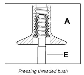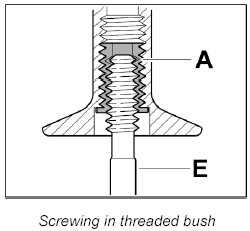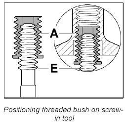 Screw threaded bush A in fully (note bush length classification) using the screw-in tool E.