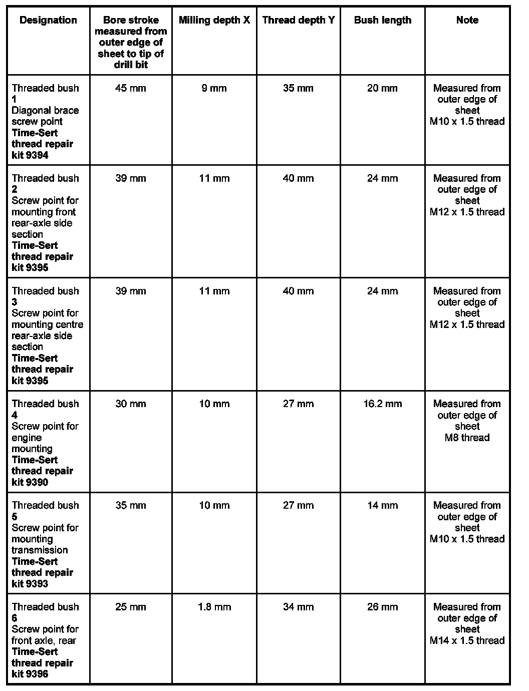 - Thread repairs can only be carried out using the Time-Sert thread repair system.