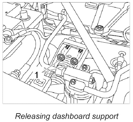 16. Get another person to help you remove the dashboard support carefully in an upward direction.