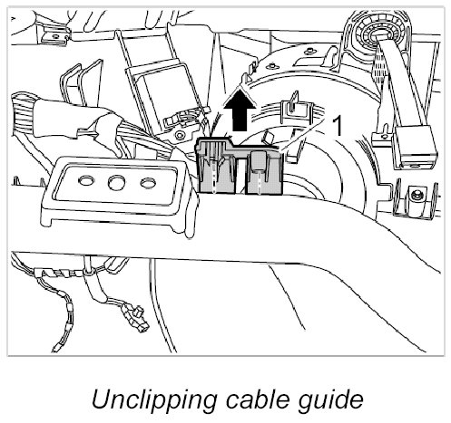 10. Unclip cable guide -1- on left of dashboard support using a screwdriver.