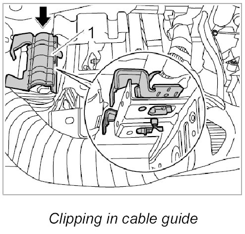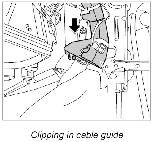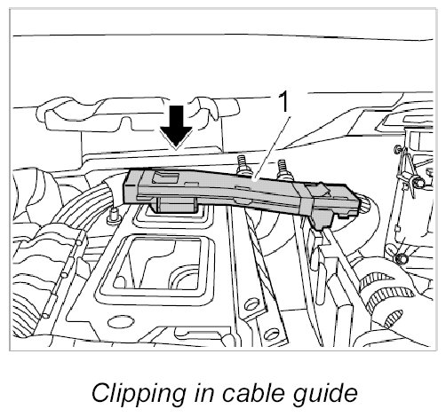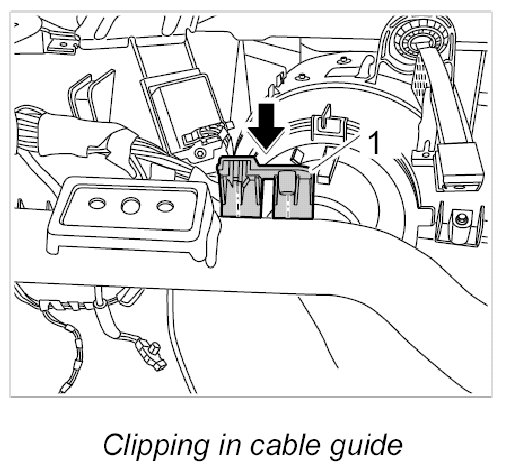 5. Clip in cable guide -1- at the right of the dashboard support.
