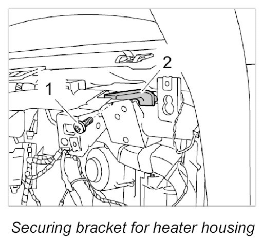 5. Unscrew fastening screw -1- on bracket for heater housing -2-.