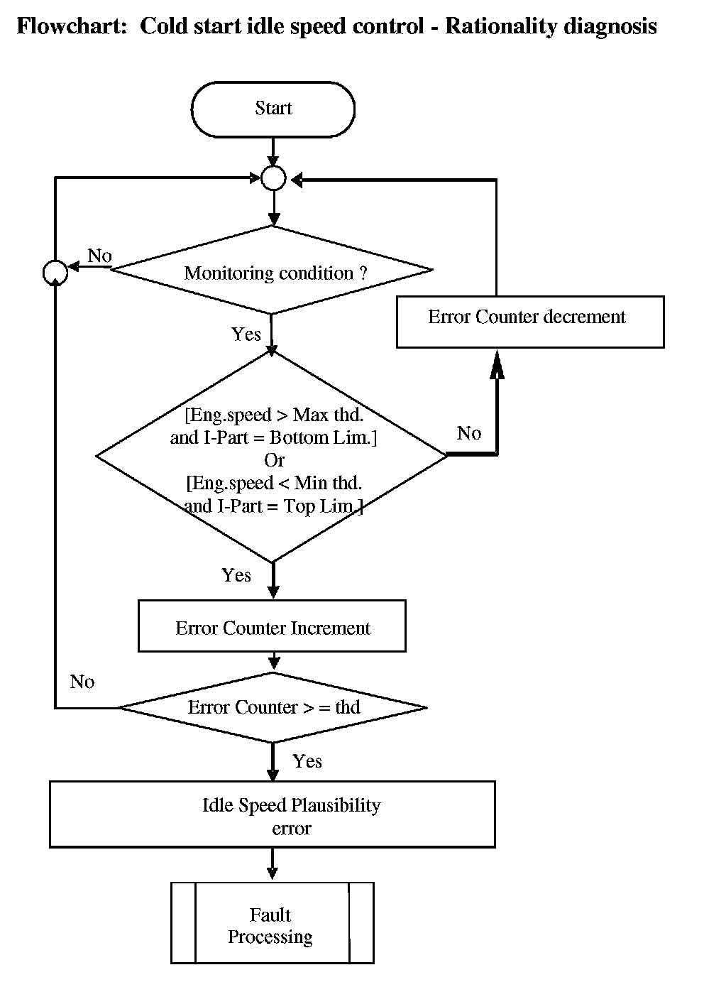 Flowchart: Cold start idle speed control - Rationality diagnosis