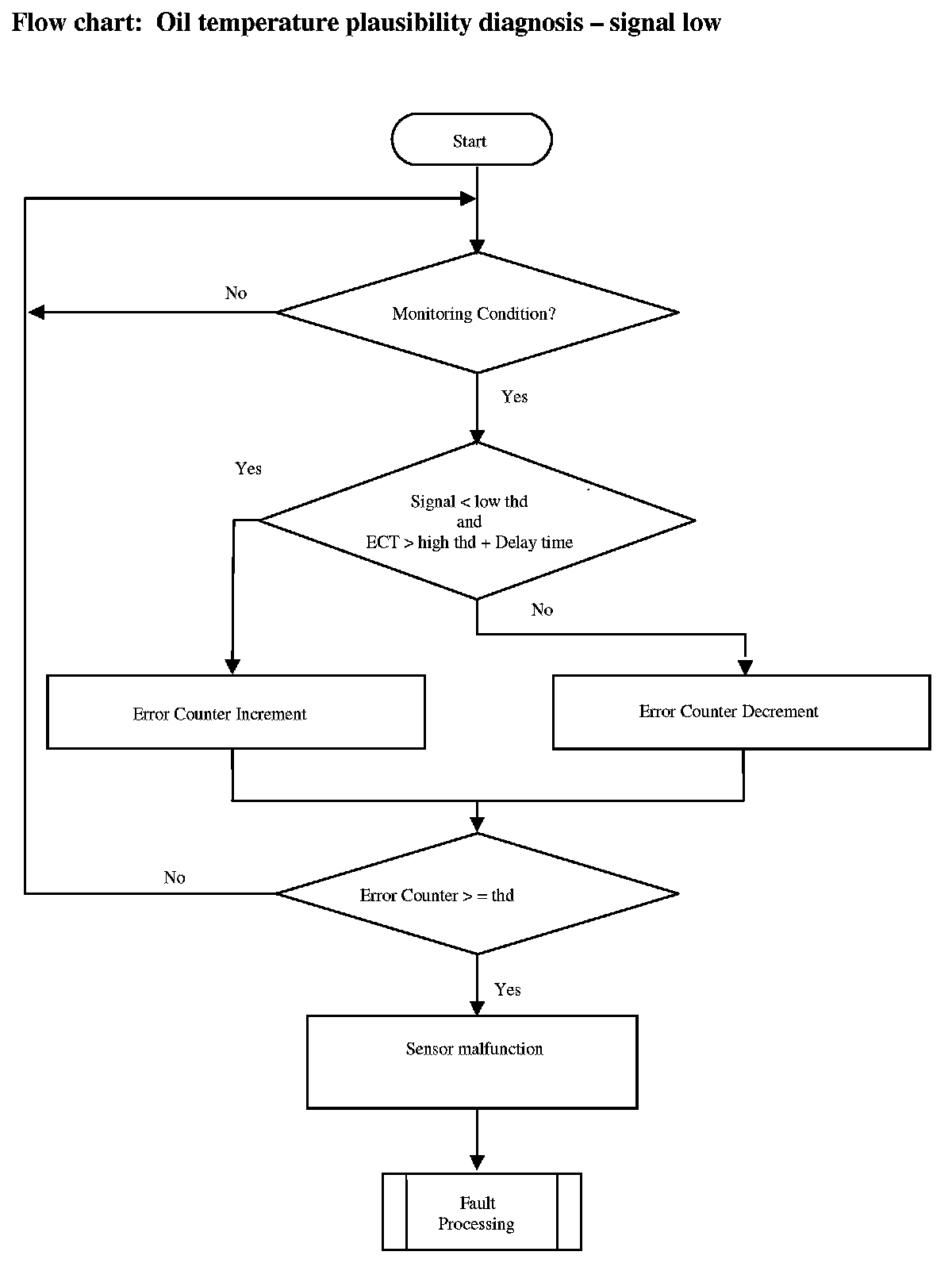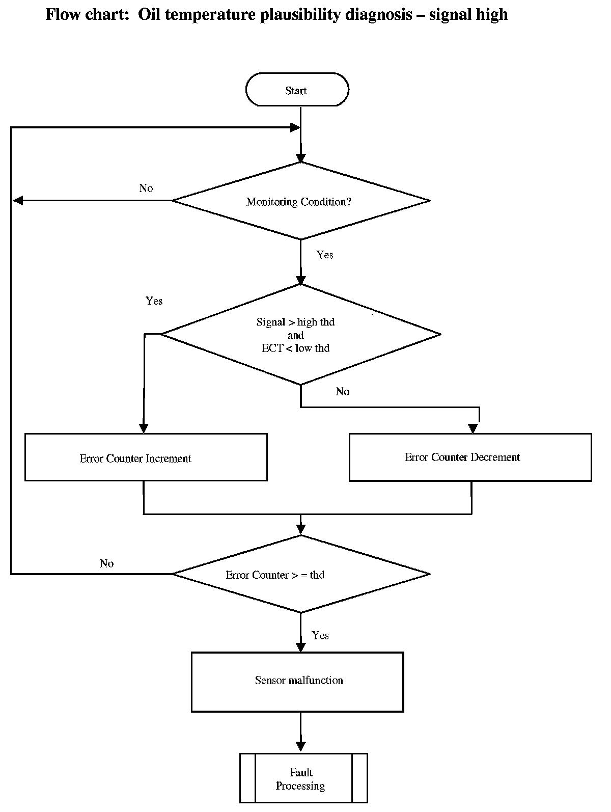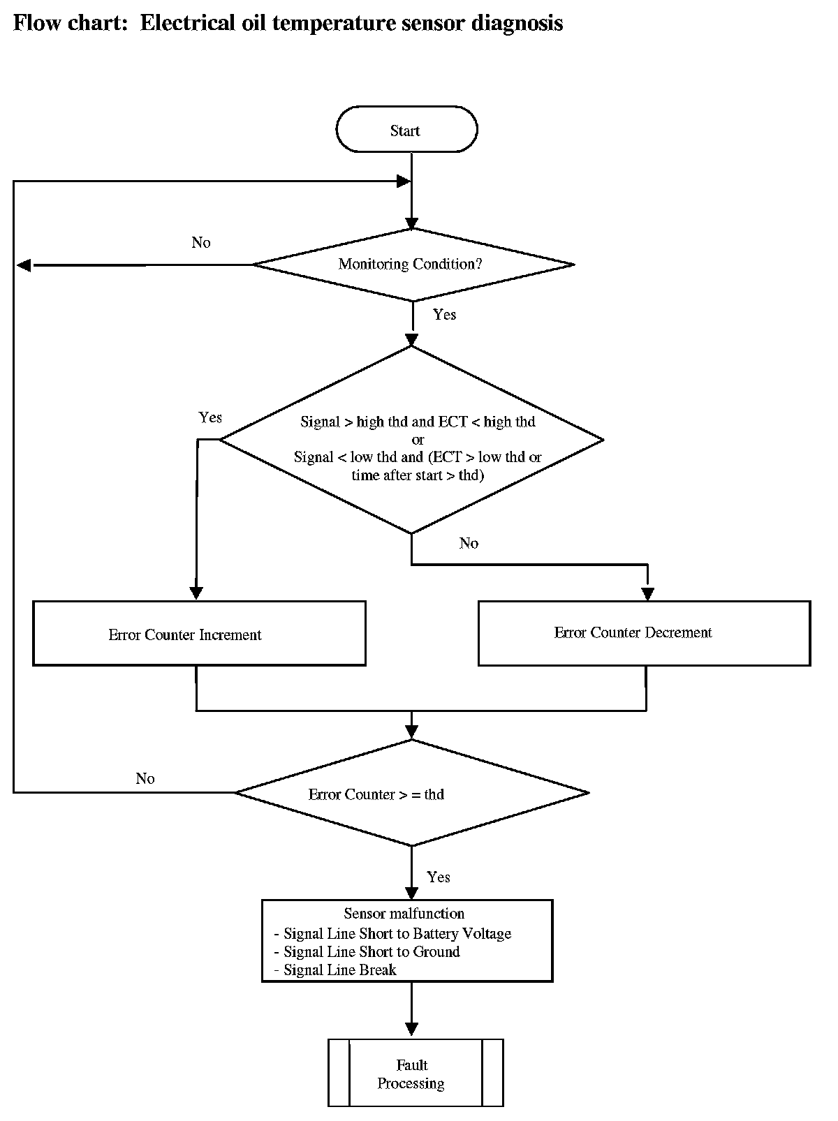 The diagnosis basically involves the comparison of the oil temperature sensor-signal to a plausible temperature range based on ECT sensor signal.