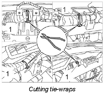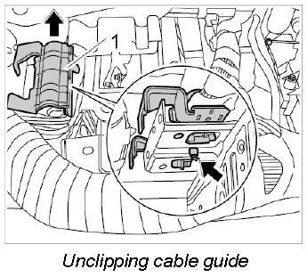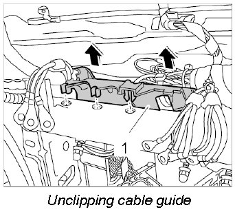 10. Unclip cable guide -1- on left of dashboard support using a screwdriver.