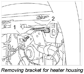 5. Unscrew fastening screw -1- on bracket for heater housing -2-.