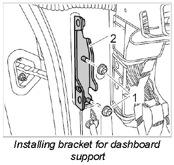 7. Unscrew fastening screws at the left and right -1- on the dashboard support -2-.