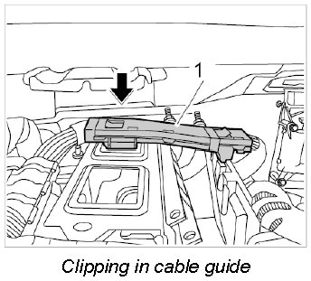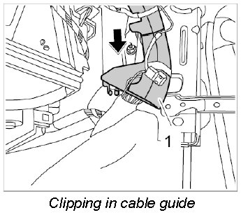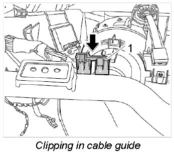 5. Clip in cable guide -1- at the right of the dashboard support.