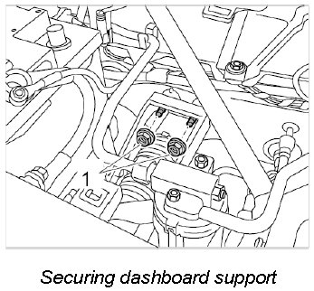 9. Unscrew right fastening screw -1- and pull dashboard support -3- out slightly.