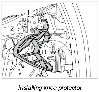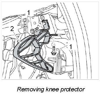 1. Unscrew fastening screws -1- and remove knee protector -2-.