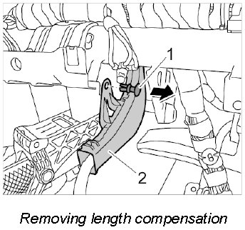 2. Push out fixing clip -1- and unclip length compensation -2-.