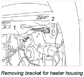 5. Unscrew fastening screw -1- on bracket for heater housing -2-.