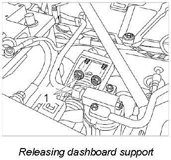 16. Get another person to help you remove the dashboard support carefully in an upward direction.