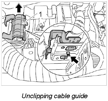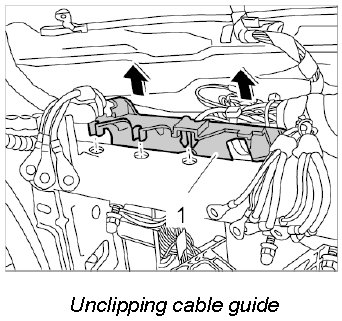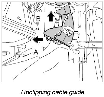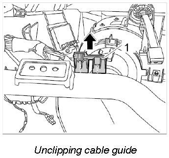 10. Unclip cable guide -1- on left of dashboard support using a screwdriver.