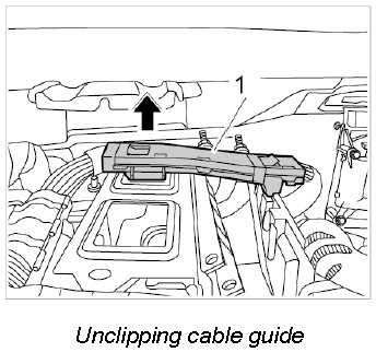 11. Unclip cable guide -1- on dashboard support from below -Inset-.