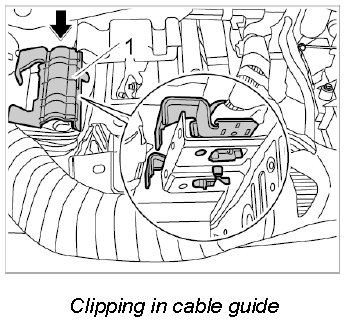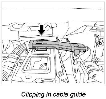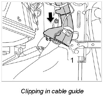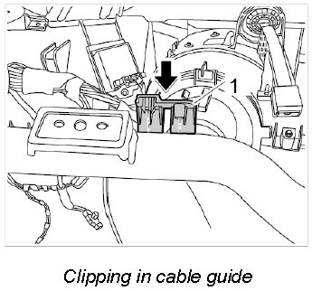 5. Clip in cable guide -1- at the right of the dashboard support.