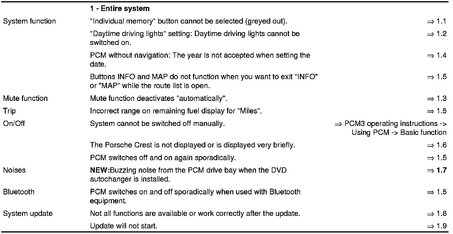 Furthermore, for information on remedial measures, also use the => 'Driver's Manual or PCM3 operating instructions'.