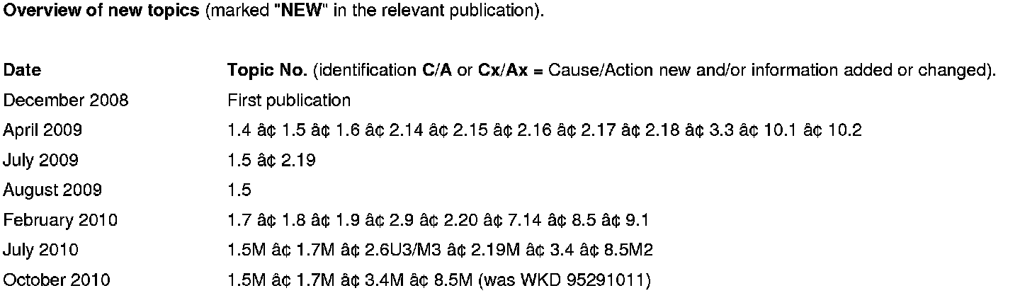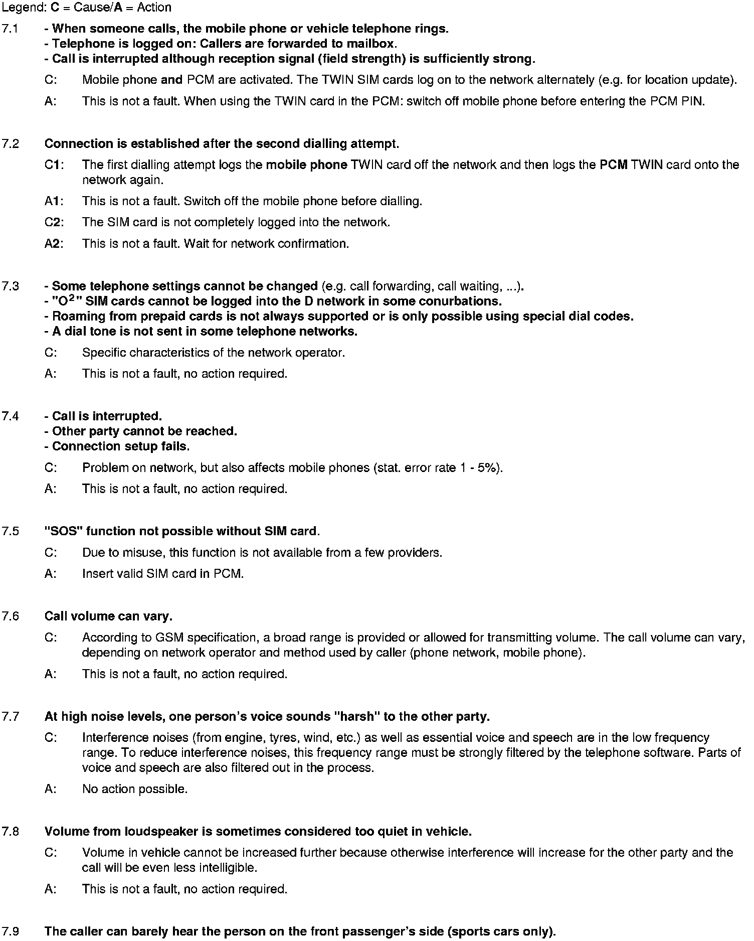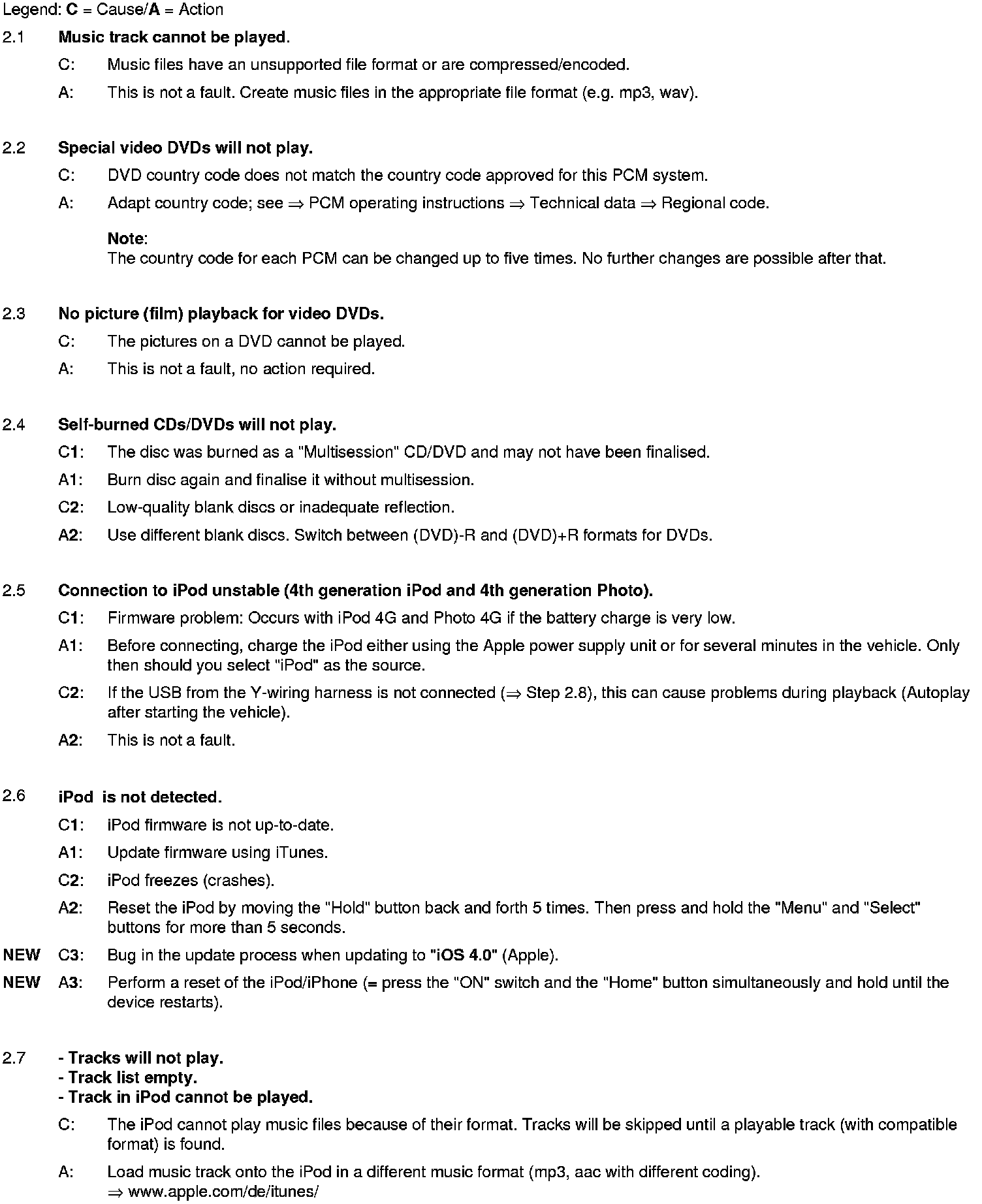 The list is sorted according to the system components and possible complaints. This is not a complete list of defects.