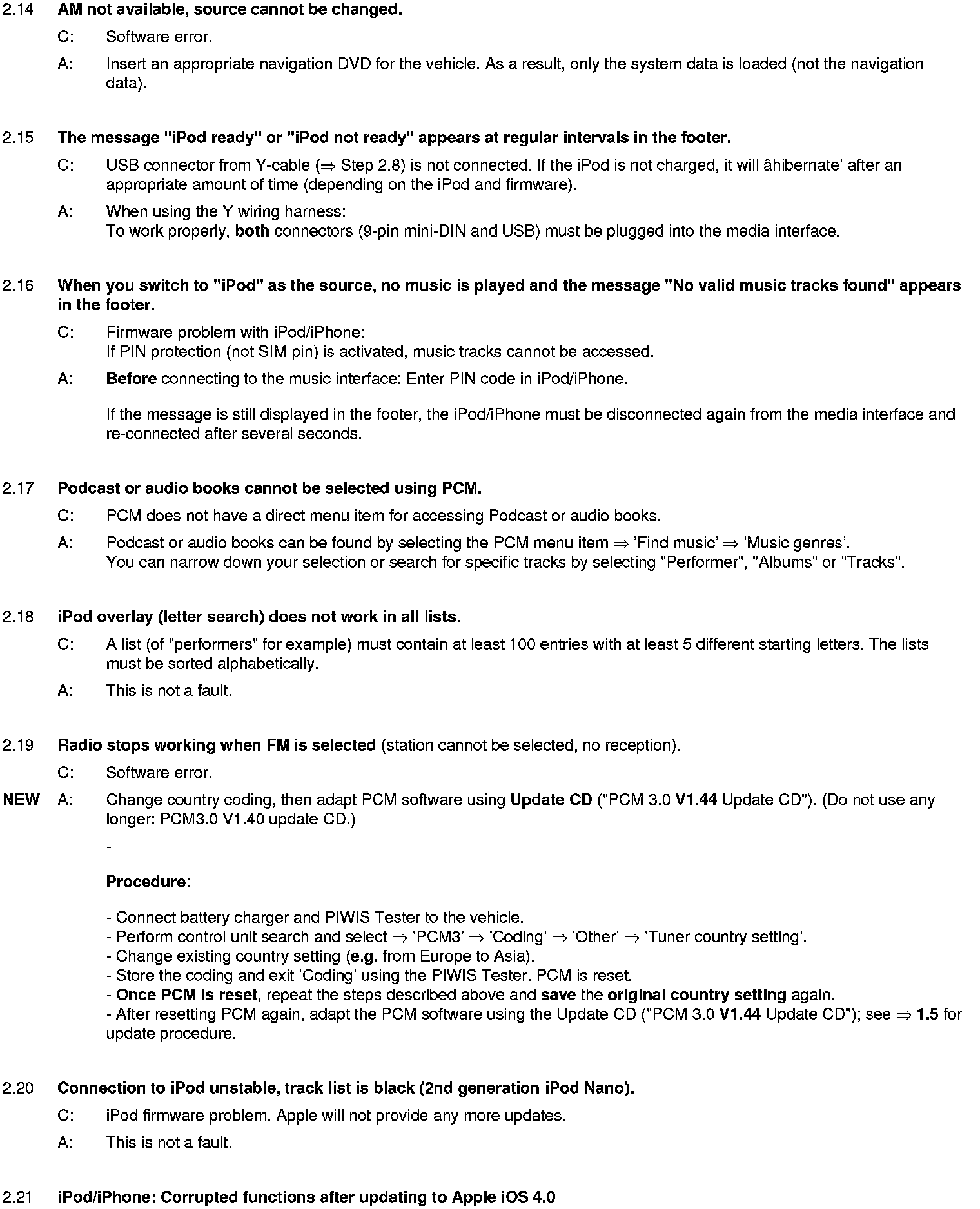 WM 911049 Eliminating symptoms in body interior: PCM3.0 integrated system: Complaints and repair instructions (SY01-08)