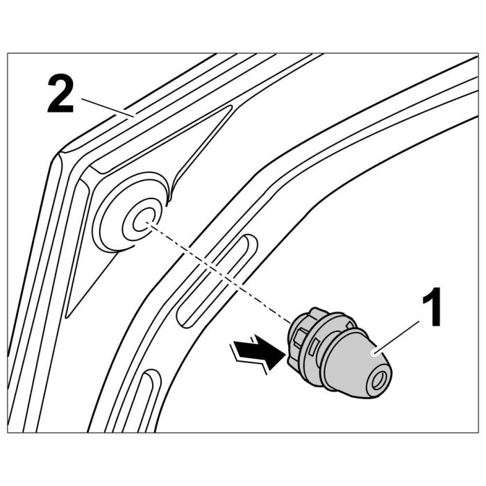 1. Position adjusting element -1- on rear lid -2- and push in until locking tabs -arrow- click into place.