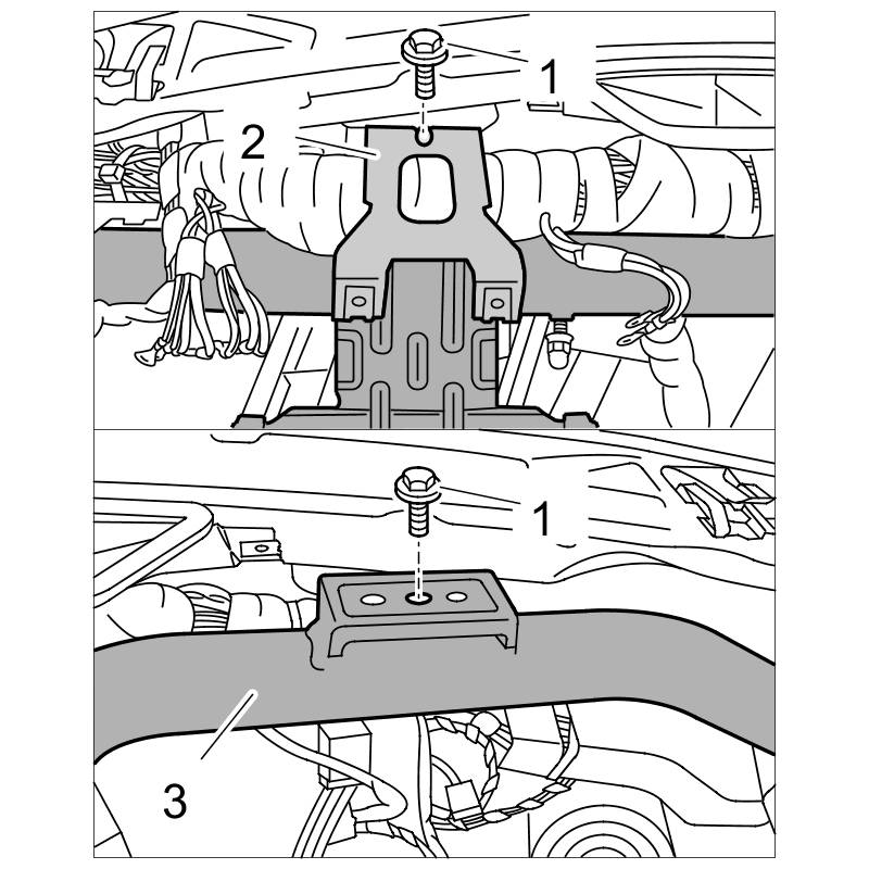 Position bracket -2- according to the marks you made and secure in place with fastening nuts -1-. => Tightening torque: 23 Nm (17 ftlb.)