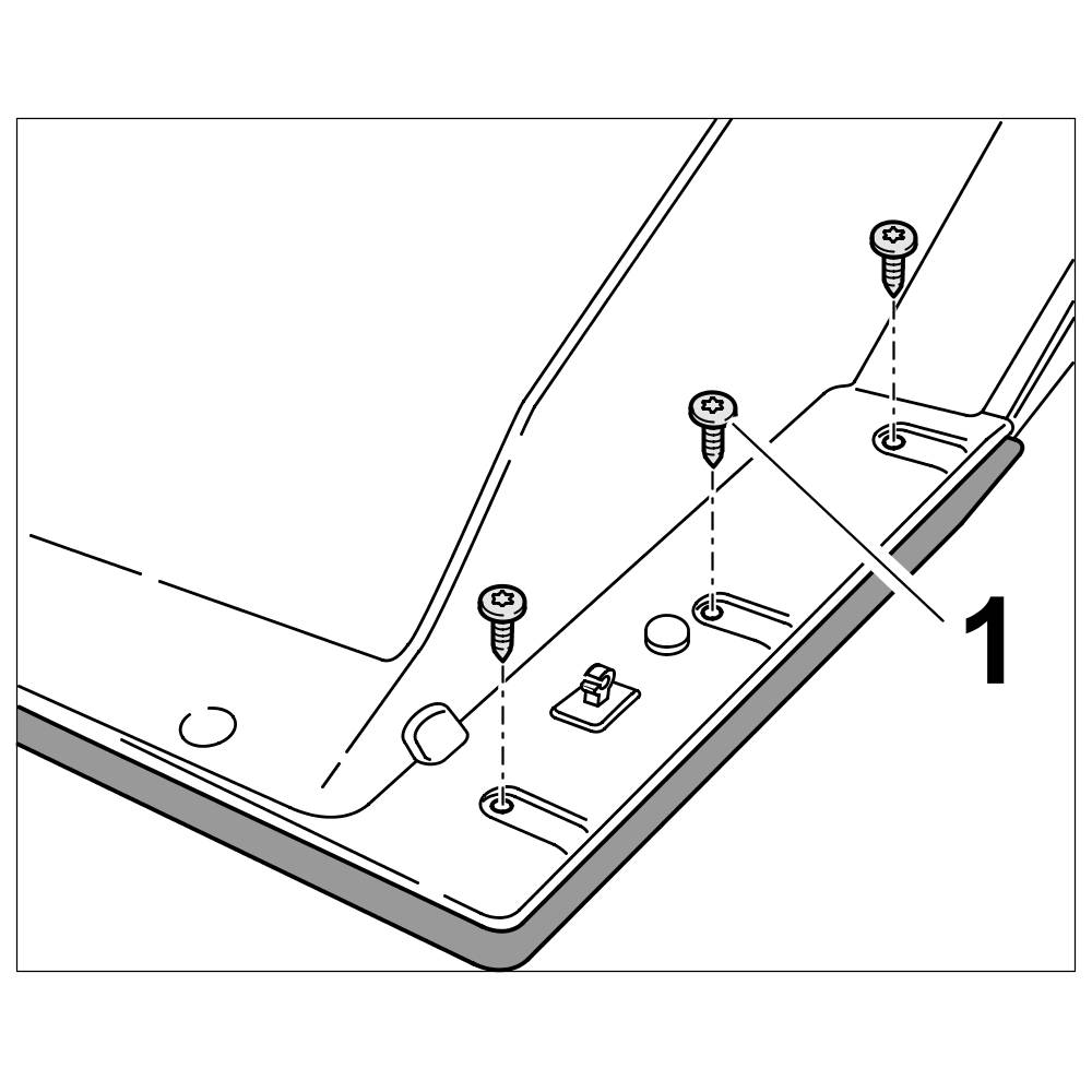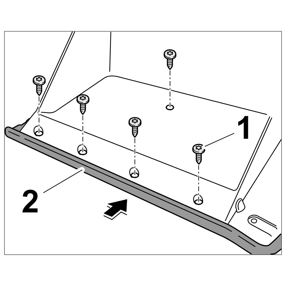 1. Position support for glove compartment lid -2- on the glove compartment lid -arrow- and screw in the fastening screws at the front -1-.