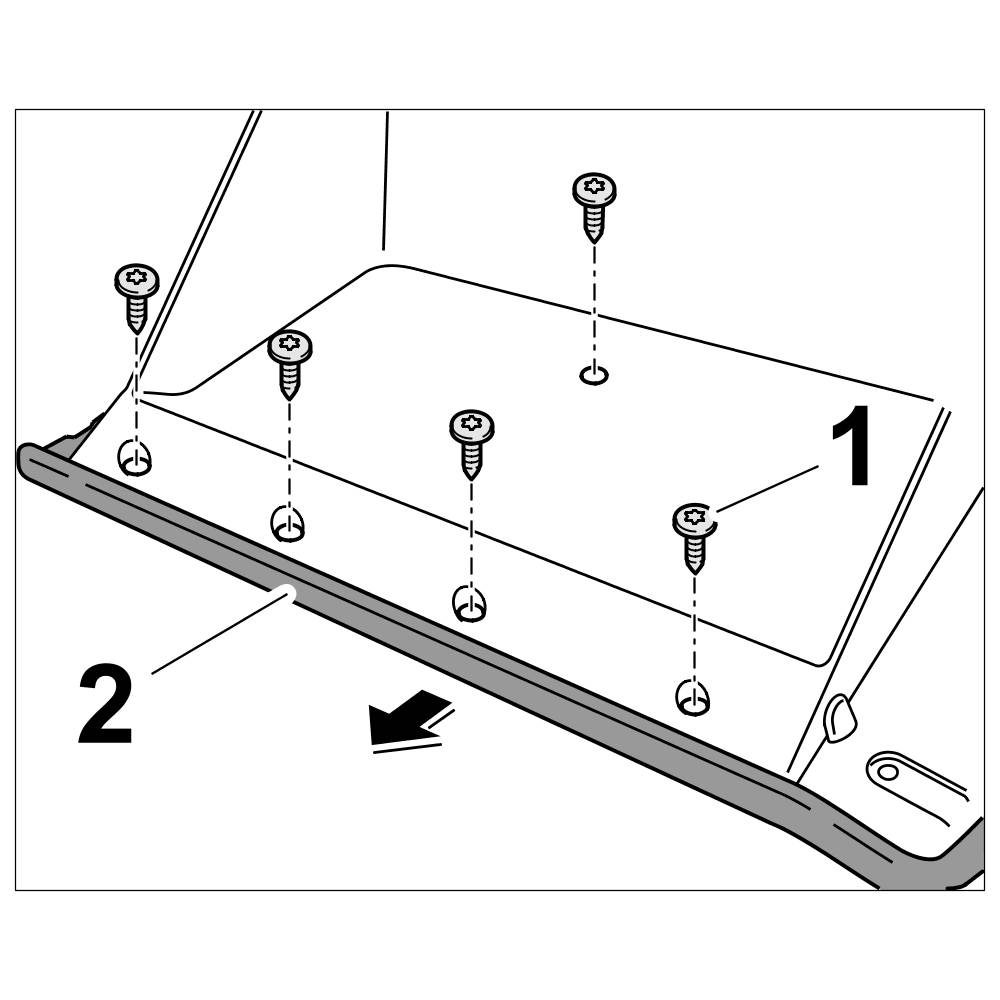 2. Unscrew fastening screws at the front -1- and remove support for glove compartment lid -2-.