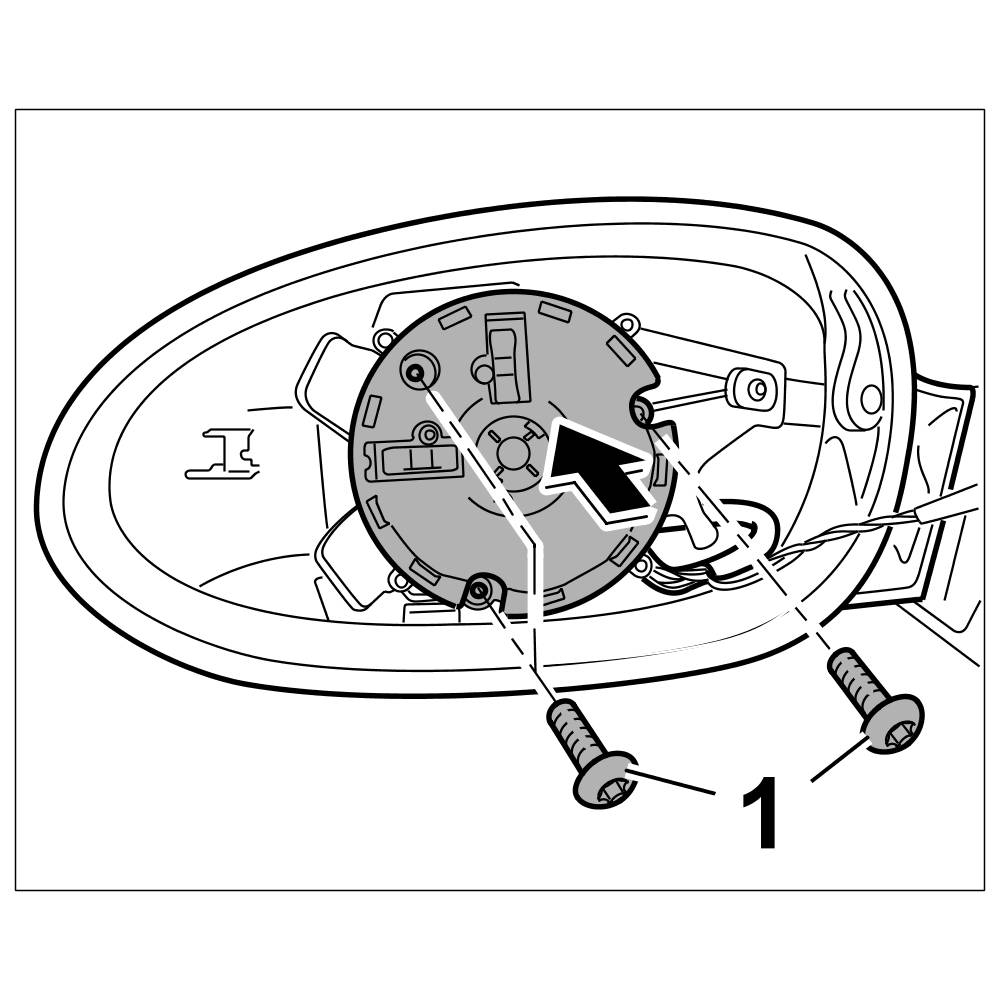 2. Unscrew the three fastening screws -1- from mirror adjusting motor.