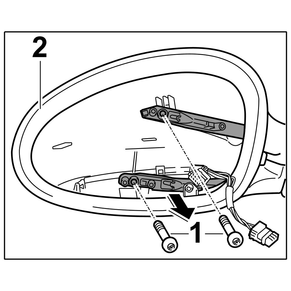2.1. Unscrew fastening screws -1- at mirror housing -2- ( -arrow- ).