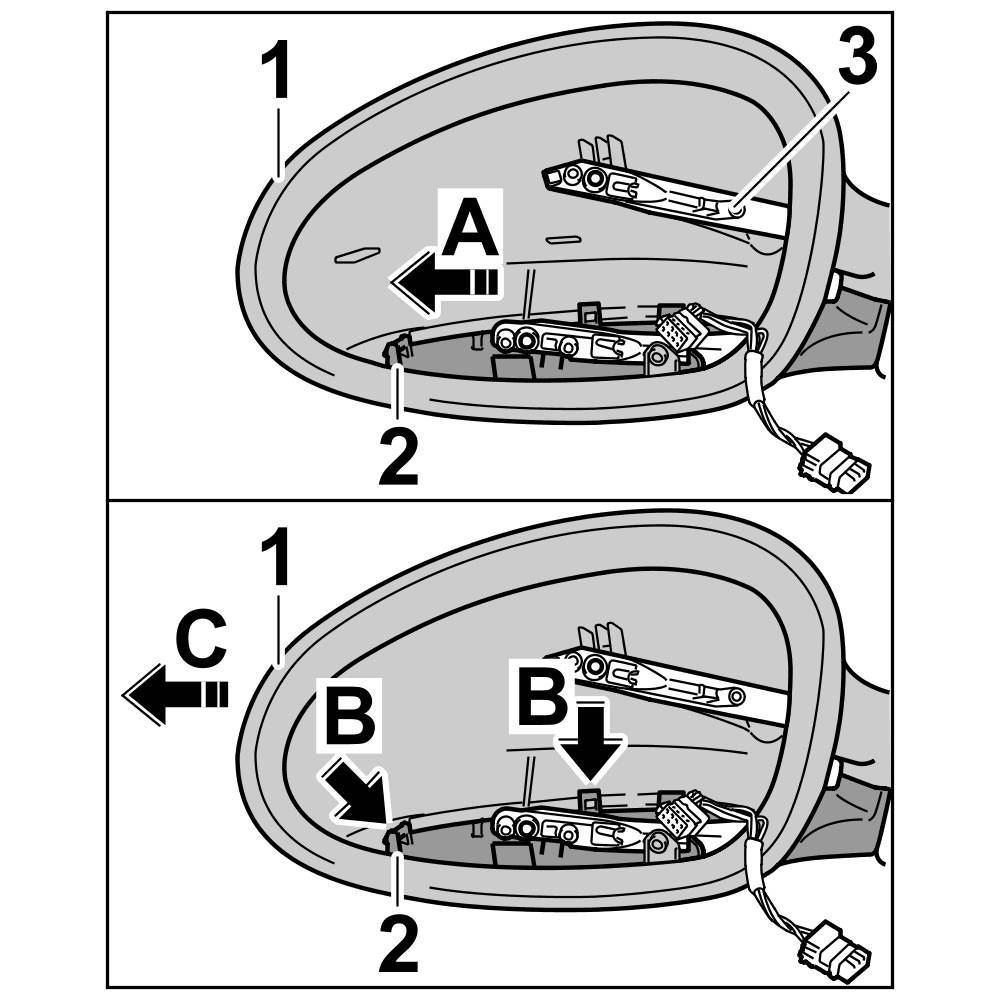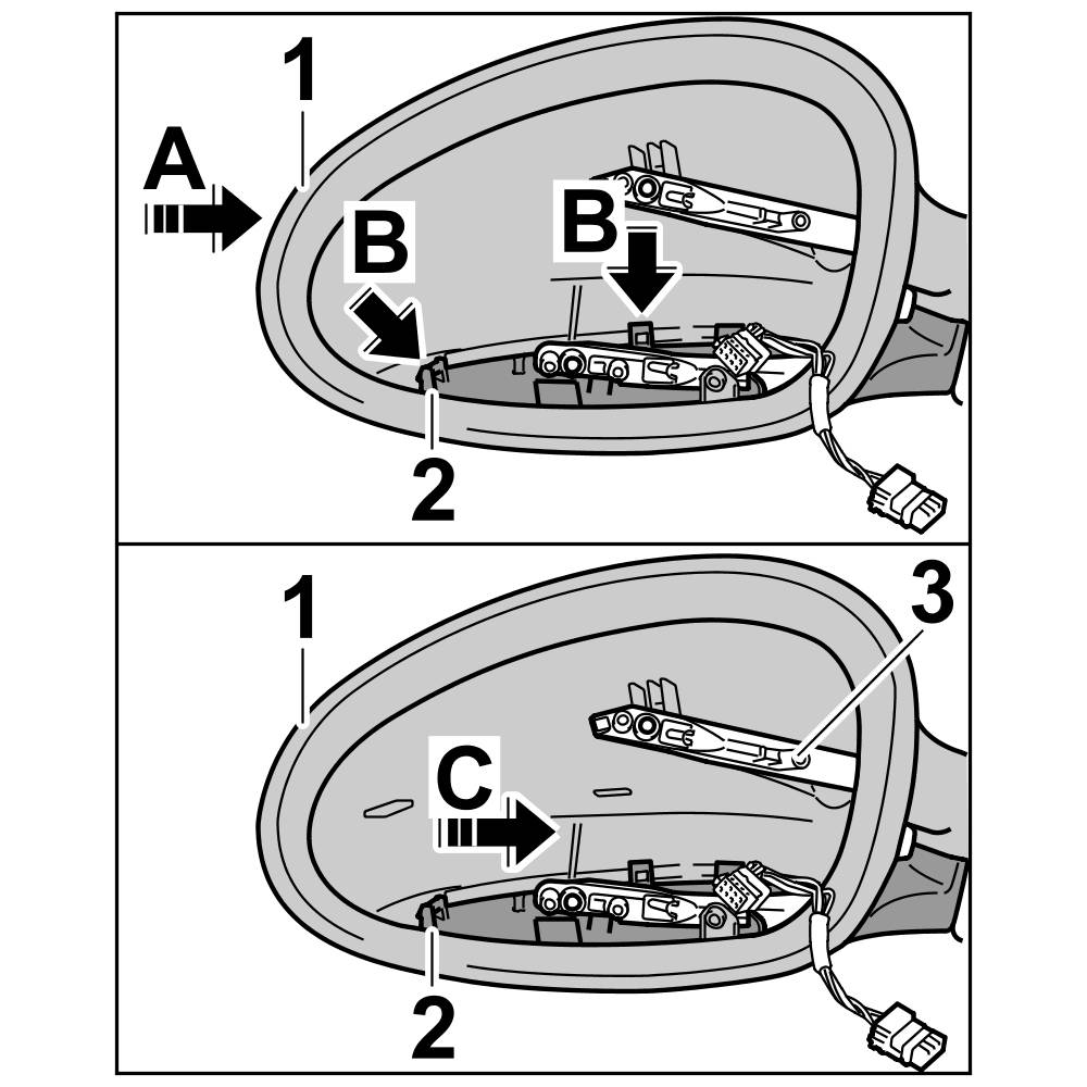 2.4. Pull mirror housing -1- out of mirror base -3- ( -arrow C- ).