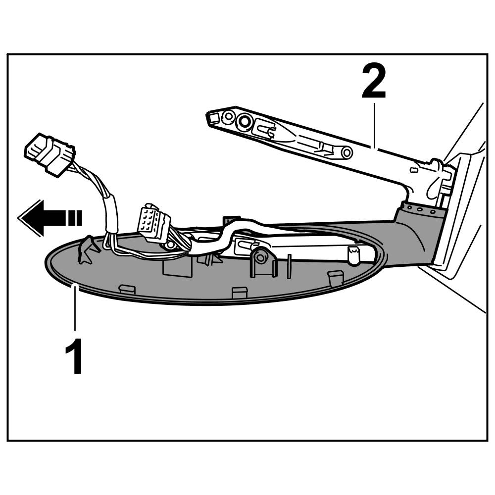 3. Pull cover -1- out of mirror base -2- ( -arrow- ).