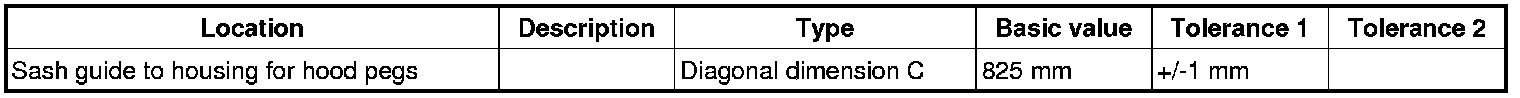 2. Dimension C from centre of edge of housing for hood pegs (inner attachment point) to centre of sash guide.