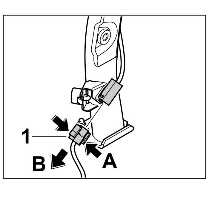 1. Press the two lugs -A- on the electric plug connection -1- and disconnect it in -direction of arrow B-.